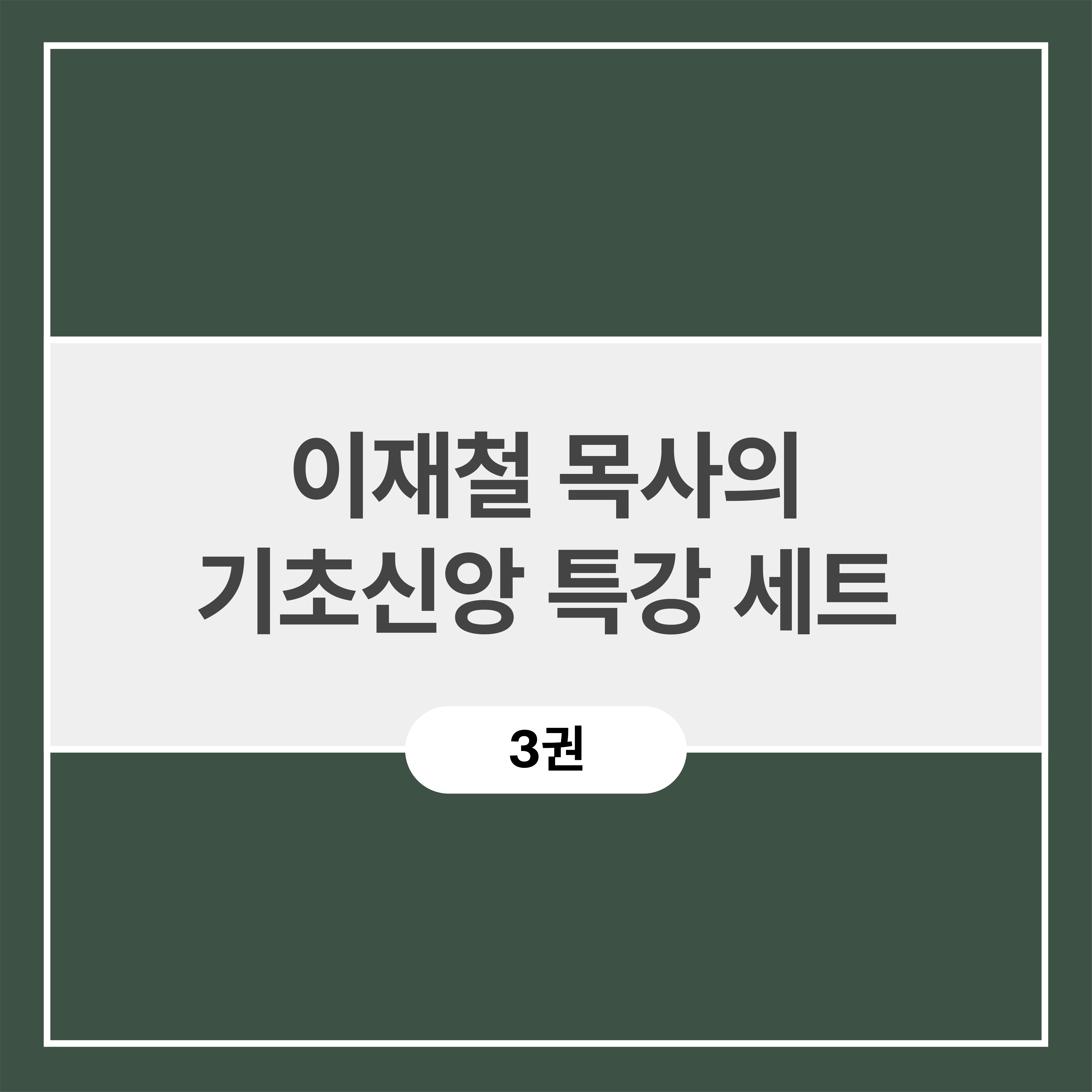 『이재철 목사의 기초신앙 특강 세트』는 이재철 목사의 기초신앙 특강 중 새신자반, 성숙자반, 사명자반으로 구성되었다.
