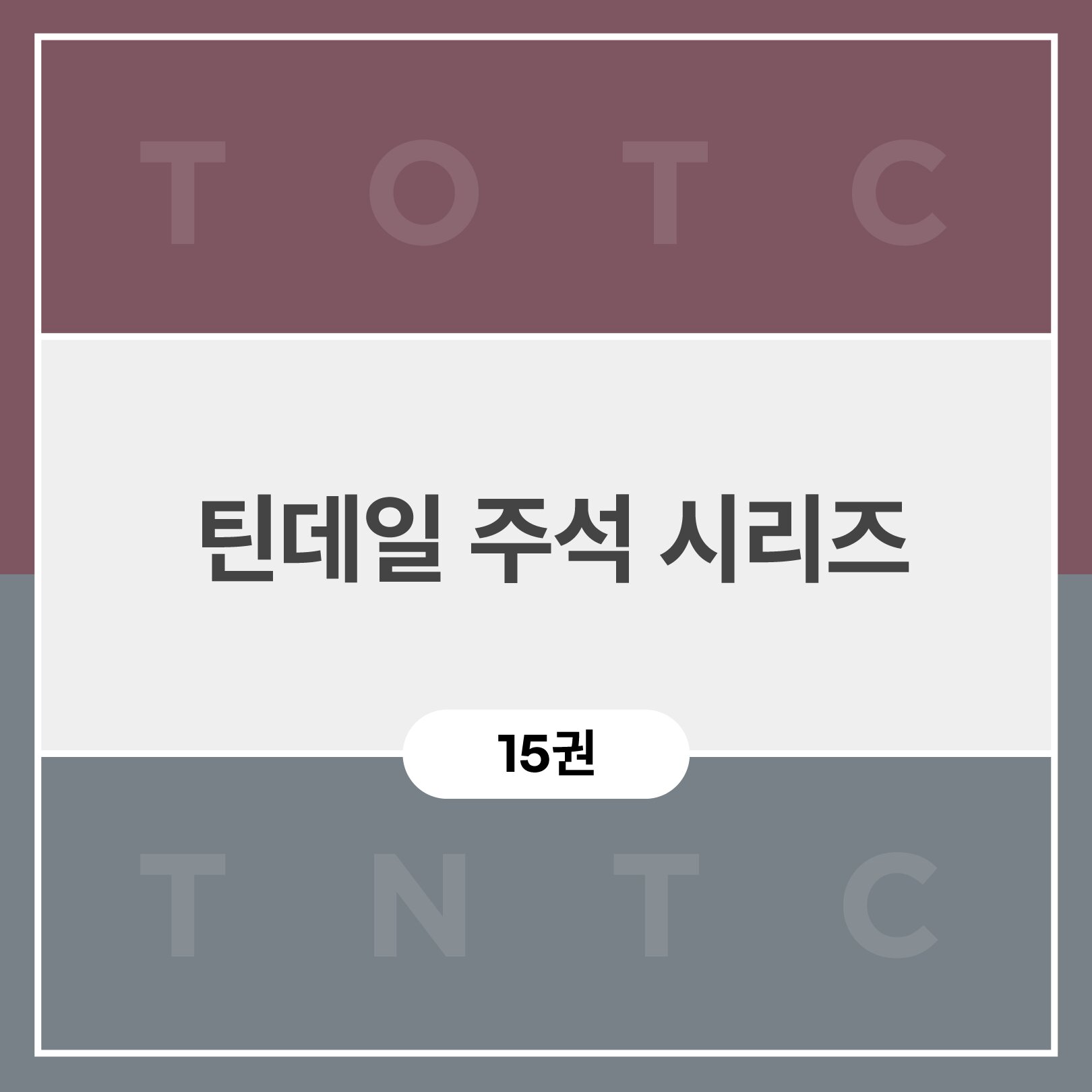틴데일 구약주석 시리즈 (TOTC)와 틴데일 신약주석 시리즈 (TNTC)는 오랫동안 성경 연구의 탁월한 참고자료로 신뢰를 받아 왔다. 세계적으로 가장 뛰어난 복음주의 학자들에 의해 저술된 이 주석 시리즈는 성경 각 권에 대해 명료하게 해설함으로 독자들에게 신뢰를 주며, 특히 성경 강해에 도움을 준다.