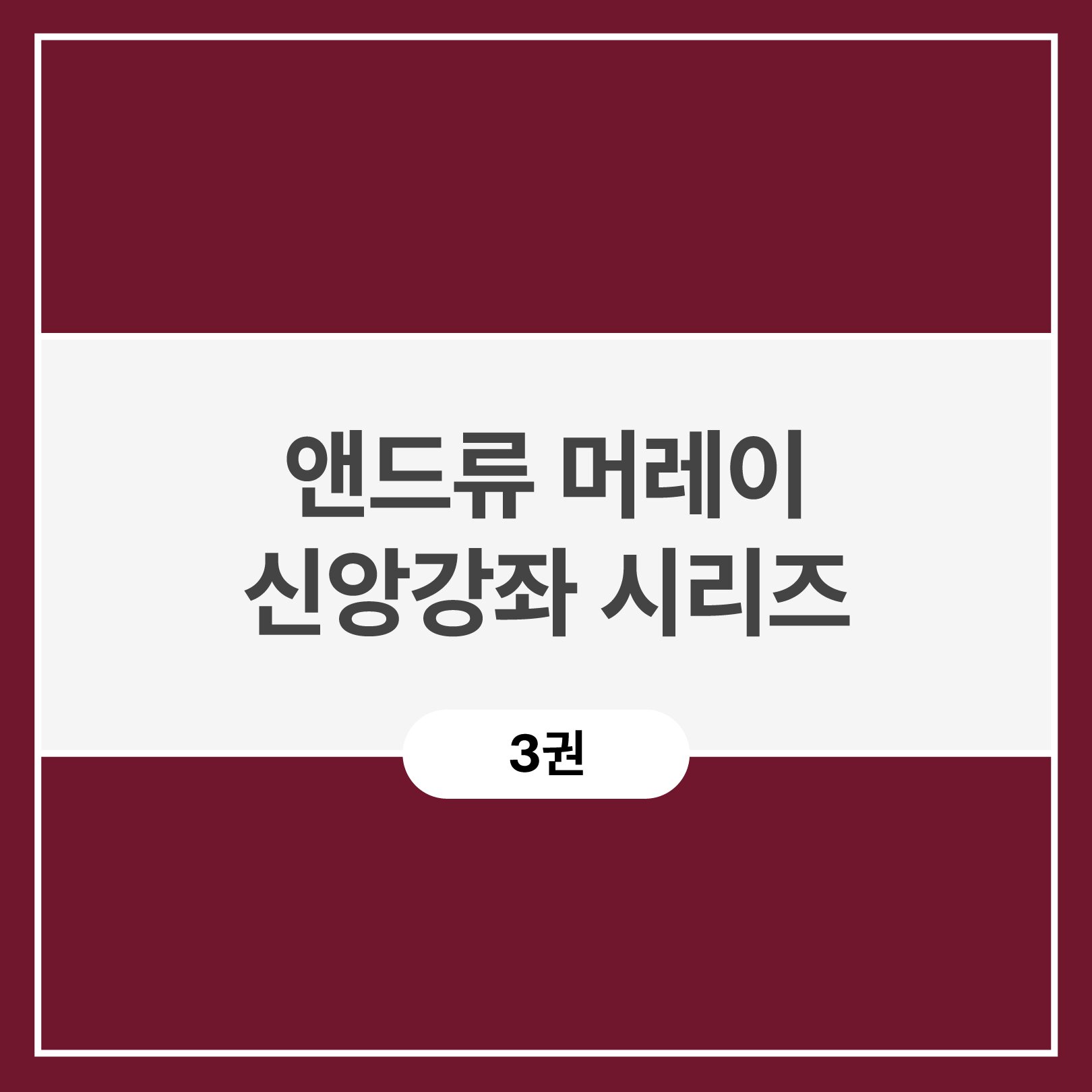 하나님의 종 앤드류 머레이(Andrew Murray, 1828~1917)가 소천한 지 100년이 지났지만, 그의 삶과 글은 여전히 많은 그리스도인의 심장에 불을 지피고 있다. 새롭게 기획하고 개정한 『앤드류 머레이 신앙강좌 시리즈』는 총 9권으로 구성되어 있으며 현재 3권까지 출간되었다.