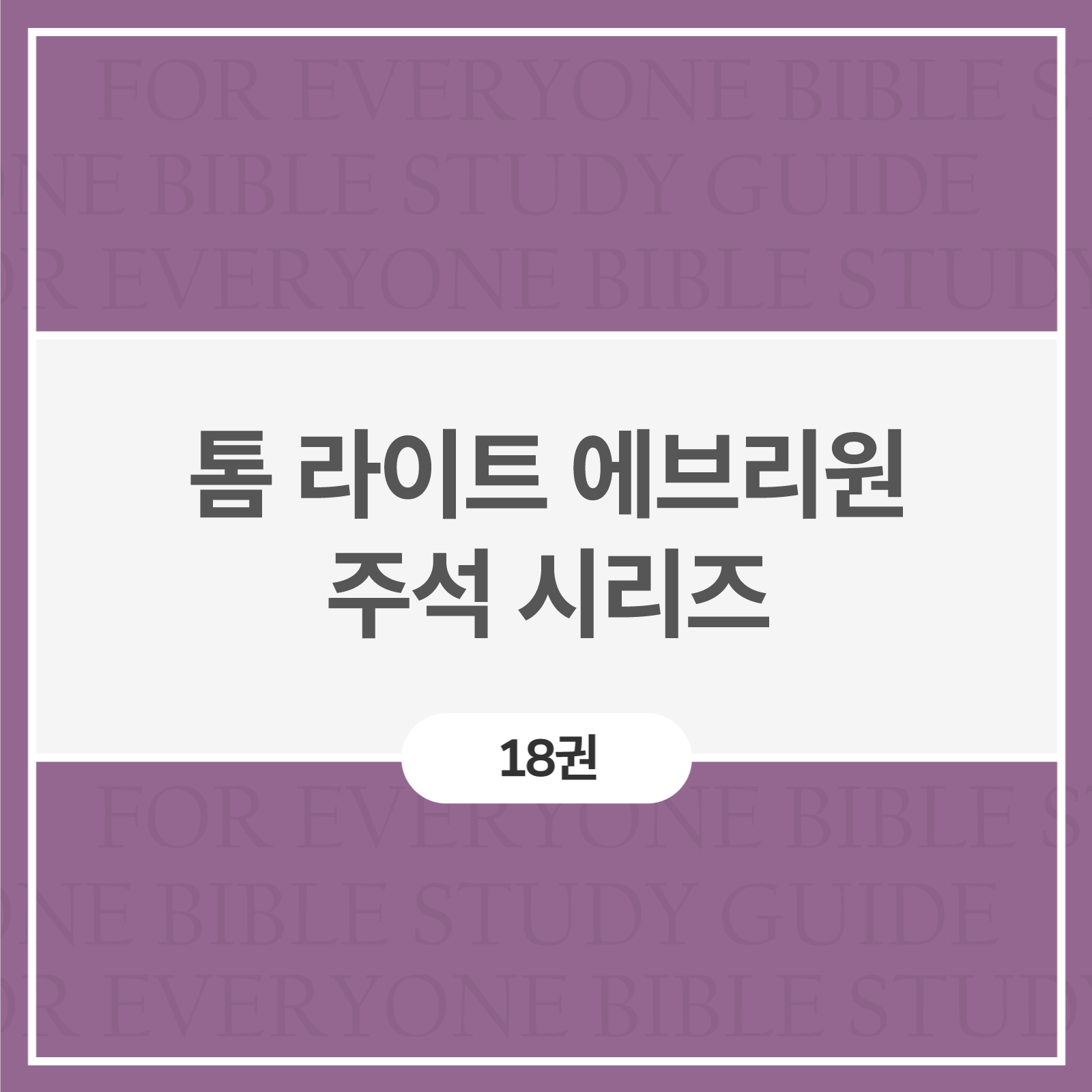 성경은 모든 사람을 위한 것이므로, 모든 사람이 성경을 읽고 그 메시지를 이해할 수 있어야 한다. 톰 라이트는 일반 독자들을 염두에 두고 성경을 현대 언어로, 최대한 원어에 가깝게 번역하고 해설했다. 『톰 라이트 에브리원 주석』은 역사적 예수 탐구와 바울 신학 분야의 선두 주자로 인정받고 있는 저자가 세계적 수준의 학문적 역량을 일반 독자들을 위해 쉽게 풀어낸 획기적인 시리즈이다. 각 본문에 대한 뛰어난 통찰력은 오늘날 우리에게 던지는 시사점이 크다. 1세기 유대 문화의 관점에서 풀어 낸 신선한 해설이 현대적인 예화들과 어우러져 한 차원 높은 성경 읽기의 경험을 선사한다.