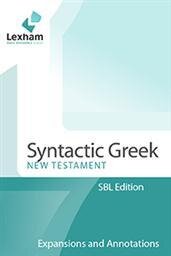 The Lexham Syntactic Greek New Testament contains the syntactic analysis of Albert L. Lukaszewski, Ph.D. Each sentence in the text is analyzed and hierarchically arranged into clauses and phrases. Each word is analyzed for its syntactic force to determine the role it plays in its current context. Words that are related to each other (e.g., adjectives describing specific nouns) are also noted. Also included is a full morphology along with lexical analysis. The following resources are included: • The Lexham Syntactic Greek New Testament, SBL Edition • The Lexham Syntactic Greek New Testament, SBL Edition: Sentence Analysis • The Lexham Syntactic Greek New Testament, SBL Edition: Expansions and Annotations • The Lexham Syntactic Greek New Testament, SBL Edition: Glossary